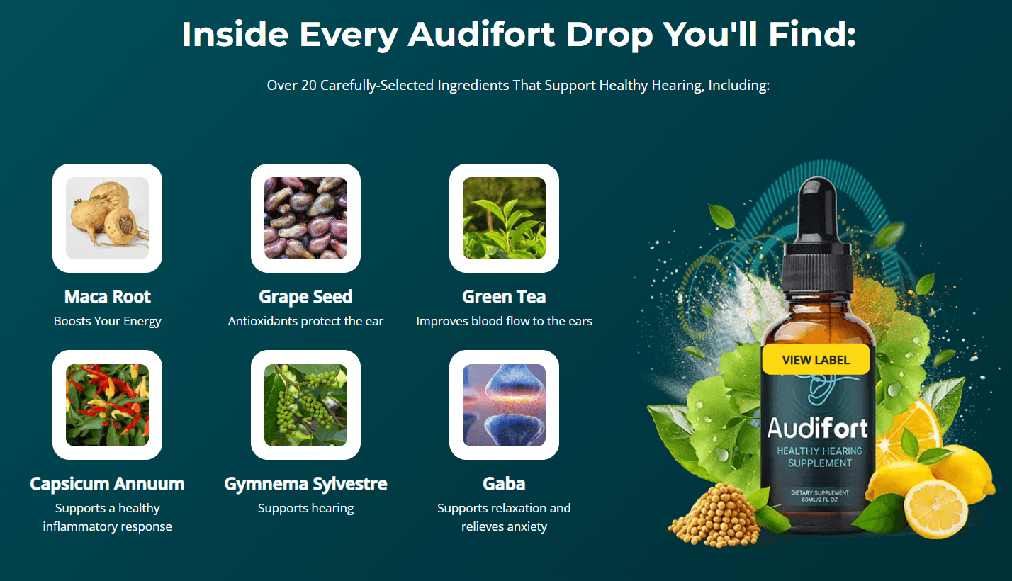 Audifort (often called “Drop Ear Health”) is a plant-based liquid ear-health supplement designed to support hearing, reduce tinnitus (ringing in the ears), and enhance cognitive clarity. Unlike hearing aids or medications, it’s a non‑habit‑forming herbal formulation made in FDA‑registered, GMP‑certified facilities in the USA.